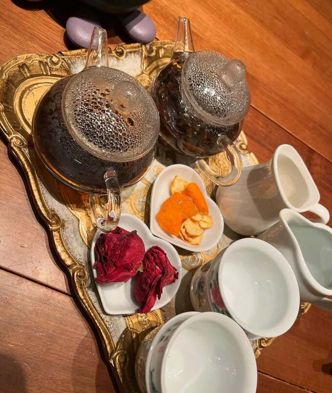 続けて「茶器が好き過ぎるので、何だかんだ言い訳を作りながら集めてしまいます。でもやはり中国茶は小さい器で飲むのが好きです!」「今日はプーアールに、陳皮 バラ を加えました。」と、綴りました。