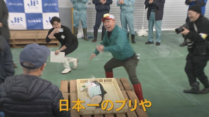 セリでは、仲買人から「日本一のブリや!」の雄たけびも。