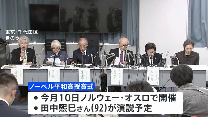 ノーベル平和賞の授賞式を来週に控え、日本被団協が会見を行い、核兵器の廃絶へ「大きな運動が起こるきっかけになってほしい」と語りました。授賞式は来週10日、ノルウェーのオスロで開かれ、登壇する代表委員3人…