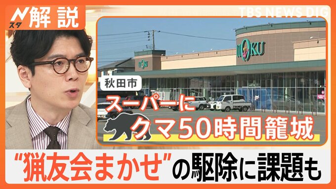 秋田市内のスーパーで開店準備中の従業員を襲い50時間ほど居座っていたクマが、ようやく捕獲されました。周辺では複数の目撃情報や車との衝突事故もあったようです。南波雅俊キャスター:現場になったスーパーは秋…