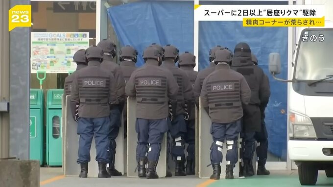 12月1日にはクマが居座っているスーパーに、重装備の警察官が配備され、店内にはドローンが飛んでいました。
