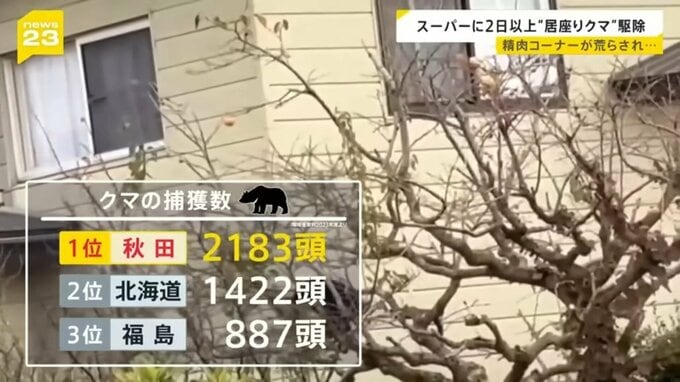 2023年、全国で相次いだクマの被害。環境省によると、秋田県では全国最多となる2183頭が捕獲されました。(クマの捕獲数▼1位:秋田 2183頭 ▼2位:北海道 1422頭 ▼3位:福島 887頭)