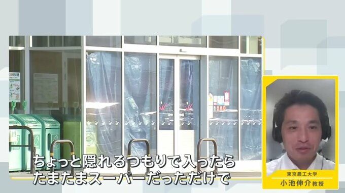 東京農工大学 小池伸介教授「檻を置いて捕まえる場合は中に誘引するエサを入れるのですが、スーパーという特性柄、食べ物がいっぱいある状況だと解決までに時間がかかったと考えられます」