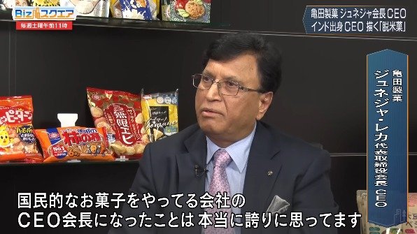 ジュネジャ・レカ氏は1984年、大阪大学工学部に研究員としてインドから来日し、生物・発酵学を研究した。2003年に食品素材メーカーの太陽化学副社長に就任後、ロート製薬の副社長を経て2020年、亀田製菓の副社長となった。