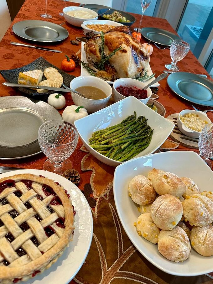 そして「我が家も、妻と子供たちでワーワーやりながら、昼過ぎからディナーの準備!」「ターキーを焼くか焼かないかでずいぶん論議しましたが、結局は焼くことになりました。」「数日前からの仕込みも大変ですよ、妻が。笑」と、豪華な料理写真の数々をアップしました。