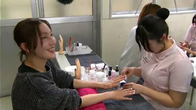 高校生が授業で学んだエステやネイルなどを保護者らに披露し、日ごろの感謝を伝えました。