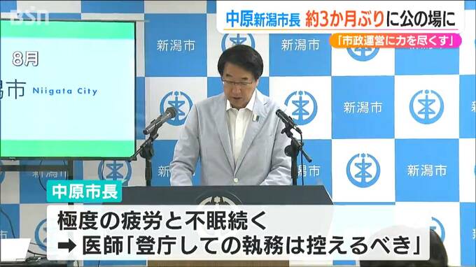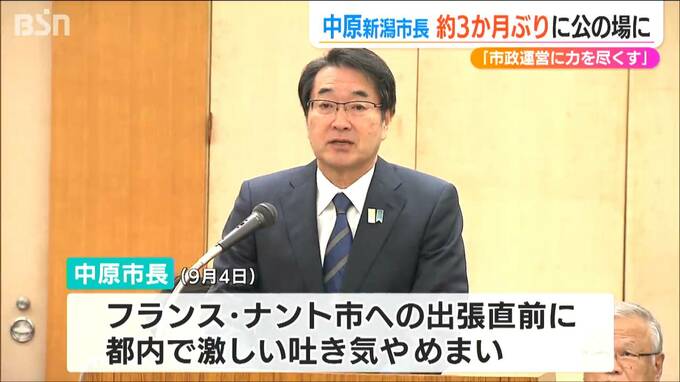 体調不良により療養を続けていた新潟市の中原八一 市長がおよそ3か月ぶりに公の場に姿を現しました。「体調は万全ではないが、市政運営に力を尽くす」としています。