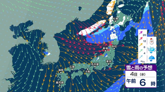 今週末は北日本で大雪や吹雪の可能性【2週間天気】太平洋側は晴れても年末年始の寒さの所も【雪と雨のシミュレーション】 チューリップテレビ 2024年12月3日(火) 16:02 国内 暮らし・マネー 雪と雨のシミュレーション 4日(水)