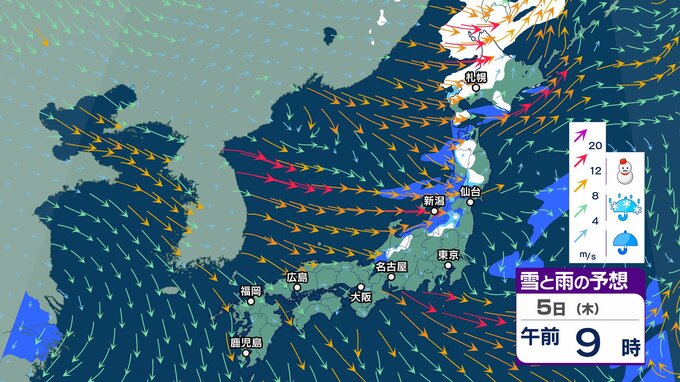 今週末は北日本で大雪や吹雪の可能性【2週間天気】太平洋側は晴れても年末年始の寒さの所も【雪と雨のシミュレーション】 チューリップテレビ 2024年12月3日(火) 16:02 国内 暮らし・マネー 雪と雨のシミュレーション 5日(木)