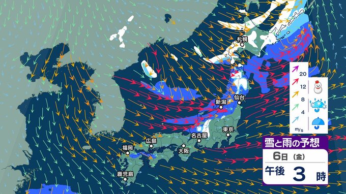 今週末は北日本で大雪や吹雪の可能性【2週間天気】太平洋側は晴れても年末年始の寒さの所も【雪と雨のシミュレーション】 チューリップテレビ 2024年12月3日(火) 16:02 国内 暮らし・マネー 雪と雨のシミュレーション 6日(金)