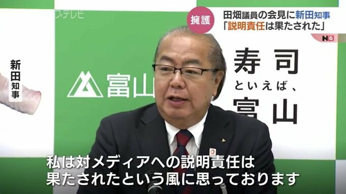 自民党の田畑裕明衆議院議員をめぐる不適切な党員登の問題について、富山県の新田知事は3日の記者会見で「50分間の質疑応答を受けられたことで、メディアへの説明責任は果たされた」と語りました。