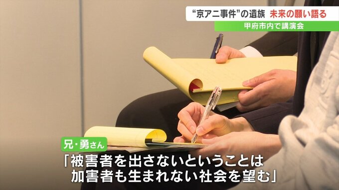 36人が亡くなった京アニ事件の遺族が、未来の願いを語る講演会が甲府市で開かれました。