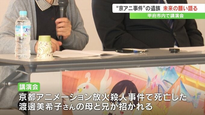 講演会は「被害者支援センターやまなし」が開いたもので、36人が死亡した「京都アニメーション放火殺人事件」の犠牲者の一人、故・渡邊美希子さんの母・達子さんと兄・勇さんが招かれました。