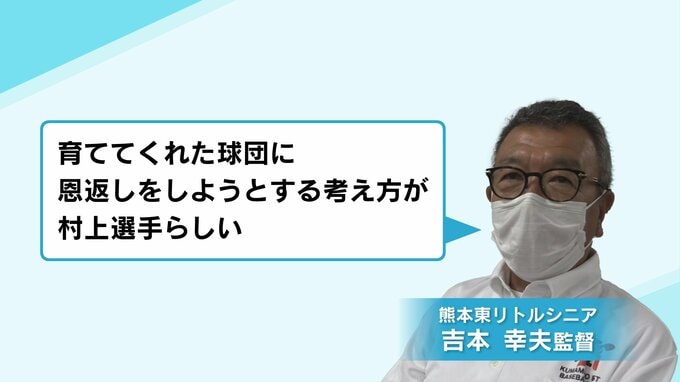 いま、村上選手は24歳。25歳を待つという考えに、中学時代に村上選手を指導した『熊本東リトルシニア』の吉本幸夫監督は「育ててくれた球団に恩返しをしようとする考え方が村上選手らしい」と話していました。