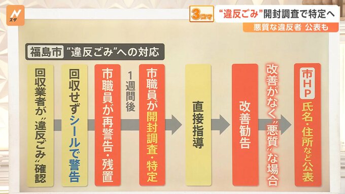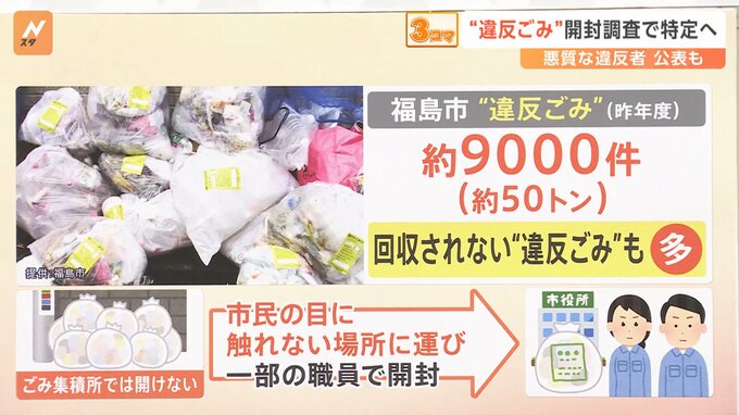 ルールを守らない“ごみ出しの対策”として、福島市は来年の施行を目指し“ごみを開封調査し出した人を特定する条例”を作り、悪質な違反者については市のホームページで氏名や住所の一部を公表する方針を示しました。