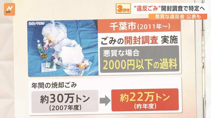 千葉市では、2011年からごみの開封調査を行っていて、悪質な場合は2000円以下の過料を科すということです。今のところ過料が科されている人はいないそうです。