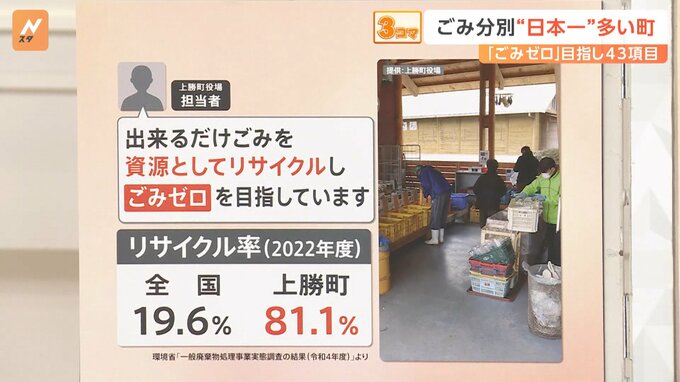 2022年度のリサイクル率は全国は19.6%ですが、上勝町は81.1%となっています。