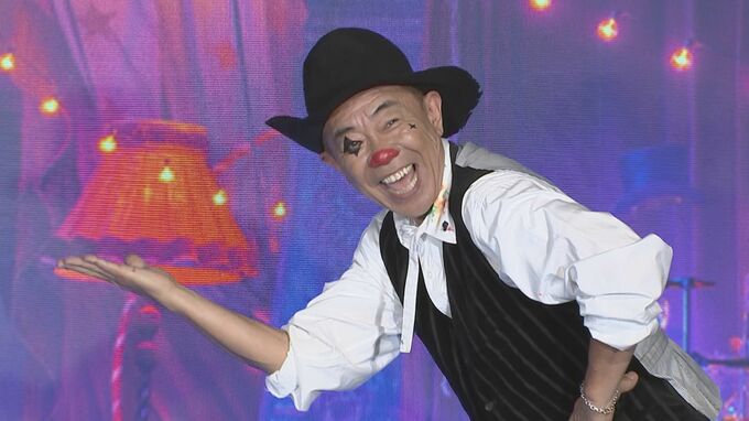 木梨さんは、アート展のコンセプトに合わせ、ピエロ姿で登場。司会から“「テクノロジー」ならぬ「テク《ノリ》ジー」によって、動き、光り、香り、歌い、走り、踊り、囲まれ、笑わせ、暴れ回る、今までにないアートエンターテインメント“と紹介されると、木梨さんは“「テク《ノリ》ジー」って言いましたけど、これ別に僕が考えたわけじゃないんで。なんか「がんばレオン」みたいな感じがしちゃうんで“と、自身がプロデュースする演歌歌手・新浜レオンさんの持ちネタ“レオン語“を使って爆笑をさらいました。
