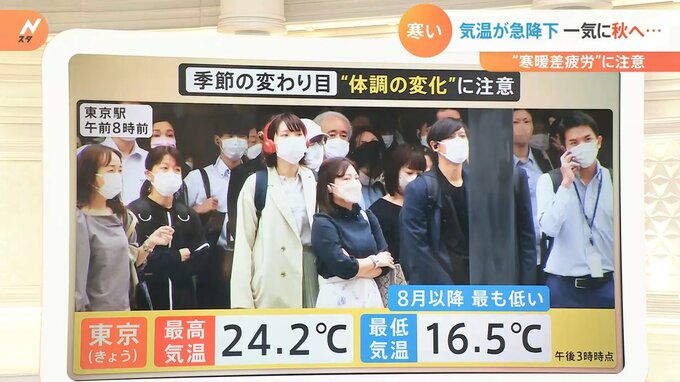 季節の変わり目には、“体調の変化”に注意が必要です。急に寒くなると体調に影響します。1日の気温の差が7度以上あると「寒暖差疲労」を感じる恐れがあります。対策のポイントは、首をあたためると良いそうです。…