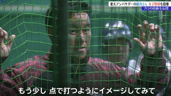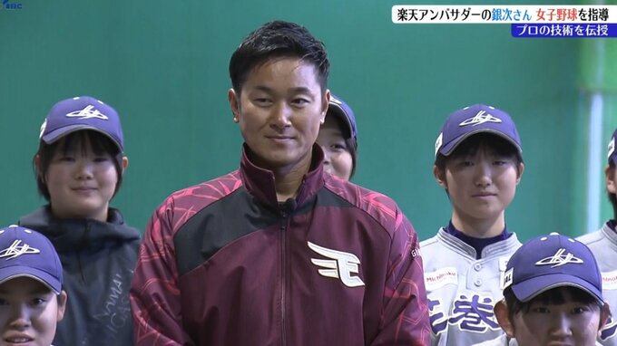 普代村出身の元プロ野球選手で、楽天のアンバサダーを務める銀次さんが花巻東高校の女子硬式野球部を指導しました。