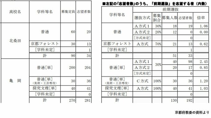 京都府公立高校入試2025 堀川2.04倍 嵯峨野2.31倍 鴨沂6.71倍が府内最高倍率 福知山2.13倍【令和7年度高校受験12月発表 進路志望状況調査】 毎日放送 2024年12月6日(金) 09:27 国内 南陽(普通)2.44倍 亀岡2.45倍 南陽高校の普通には117人が希望し2.44倍。南陽高校のサイエンスリサーチには94人が希望して1.18倍となっています。
