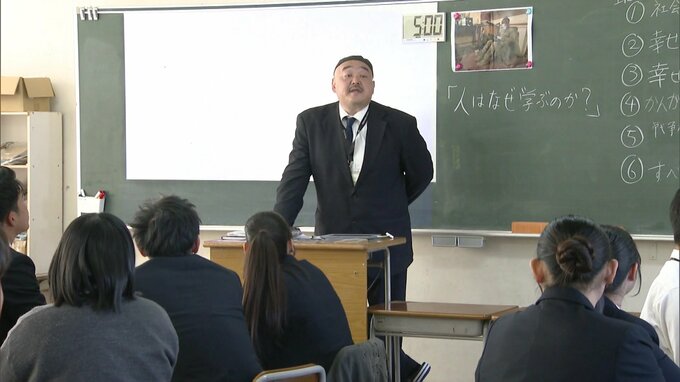 福岡県宗像市の東海大学付属福岡高校で社会科の授業を受け持つ杉山大二朗さん(49)。