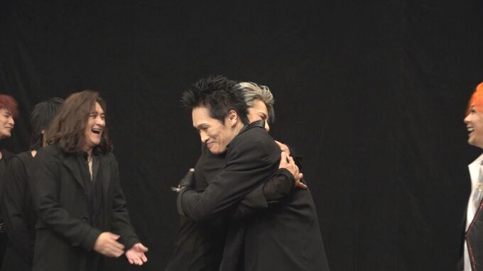 まずスタジオに入ったSOPHIAの松岡充さんは、“ドキドキ”と、ニヤニヤが止まらない様子。追ってSIAM SHADEのメンバー4人が登場すると、SOPHIAは熱い抱擁や握手で相手を迎えました。