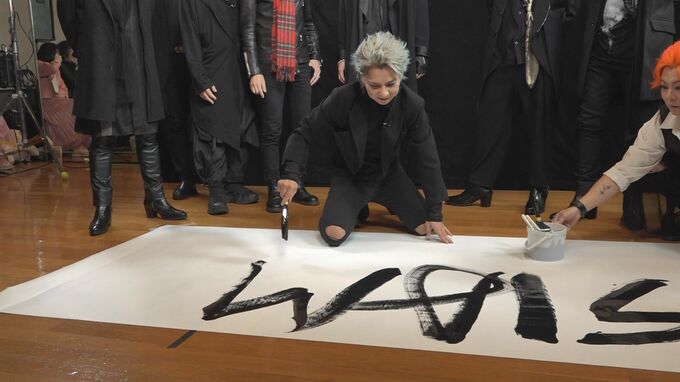 松岡さんが「SIAM」まで書いたタイミングで“スペル間違ってるよ”“もうカタカナでいいよ”などの冗談が飛ぶなど、終始ふざけあっていた9人。墨を指につけて押印するなど、全員が手を加えてロゴを完成させました。