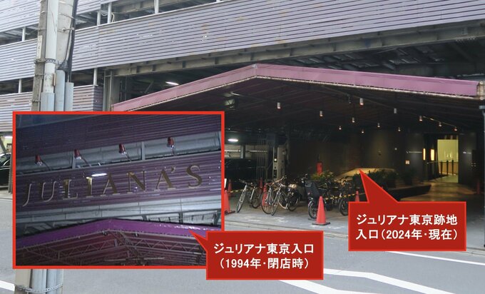 ただ「ここにジュリアナ東京があった」というストーリーを面白がってくれる経営者は多いそうで、入口の三角屋根はそのまま、あの当時の面影を今に伝えています。