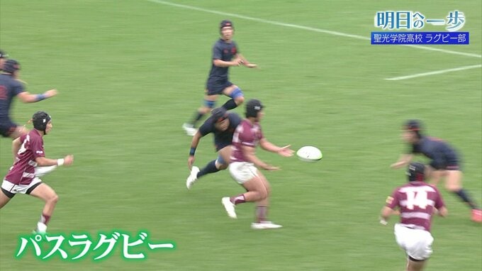 聖光学院のプレースタイルは、フィールドを広く使うパスラグビー。