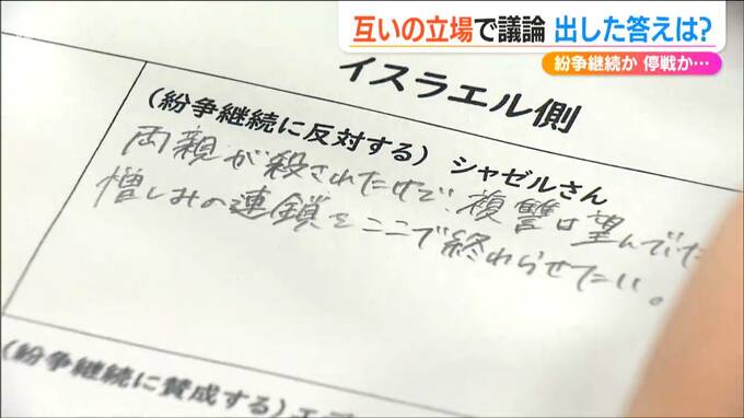 紛争が続くイスラエル・パレスチナ問題について考える授業が、新潟市の中学校で行われました。紛争継続か、それとも反対か…様々な立場に立って議論し、生徒たちが出した答えとは?鳥屋野中学校3年生の社会科の授…