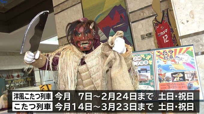 洋風こたつ列車は、7日から2025年2月24日まで、こたつ列車は、14日から2025年3月23日までの、土日・祝日に運行されます。