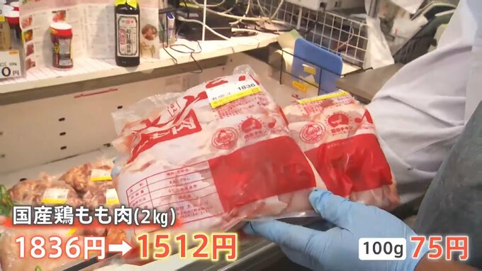 普段1836円の国産の鶏もも肉が2キロ入って1512円。100gあたり、驚きの75円です!