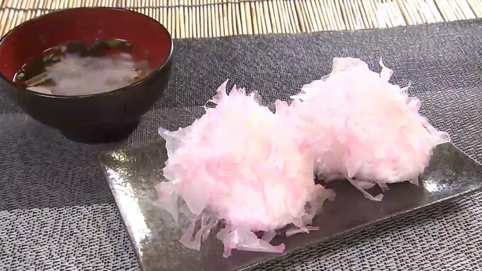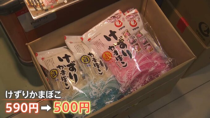 「珍味工房グルメ静岡屋」では、かまぼこを乾燥させた「削り節」が、90円引きの500円に。もちろん、そのまま食べてもおいしいんですが、おすすめは、おにぎりの周りにまぶす食べ方。