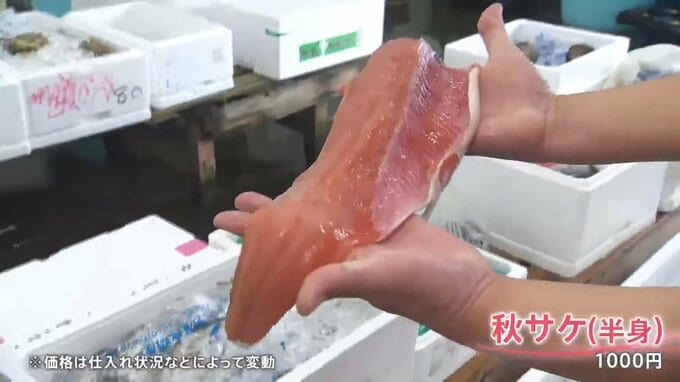例えばこちらの鮮魚店「東京北魚」では、北海道産のブランド「仙鳳趾産マガキ」が、1つ180円。秋サケは、半身で1000円と、普段から、卸値で買えちゃいます。(※価格は仕入れ状況などによって変動)