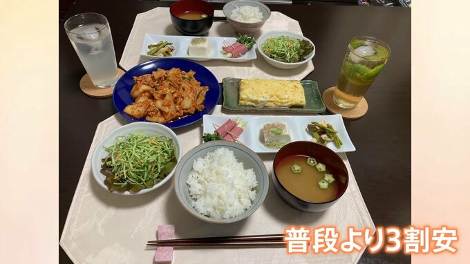 83円で買った食材6品を使った夕飯がこちら!普段より3割ほど安く抑えられたとのこと。