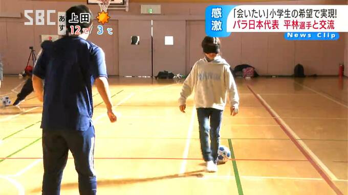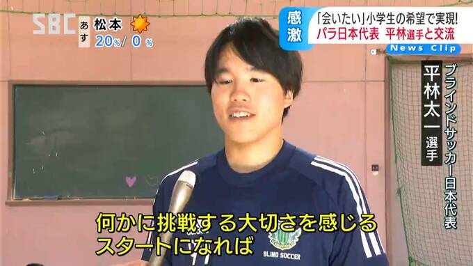 パリパラリンピックのブラインドサッカーに出場した松本市の高校に通う平林太一(ひらばやし・たいち)選手が3日、長野市で小学生と交流しました。