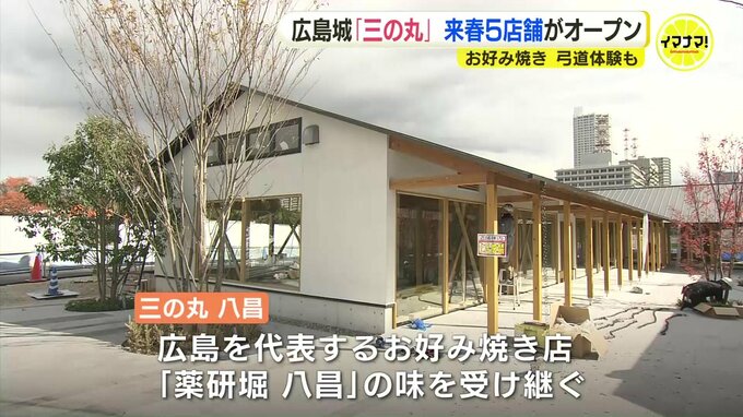 広島城「三の丸」エリアで、25年3月末にオープンする商業施設5店が発表されました。