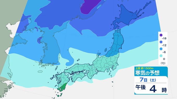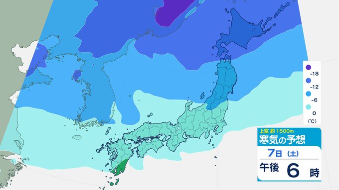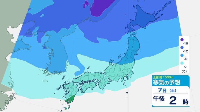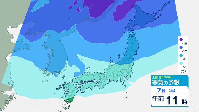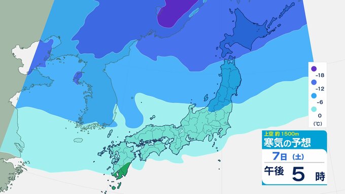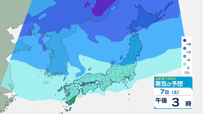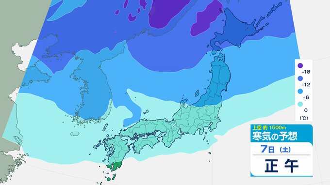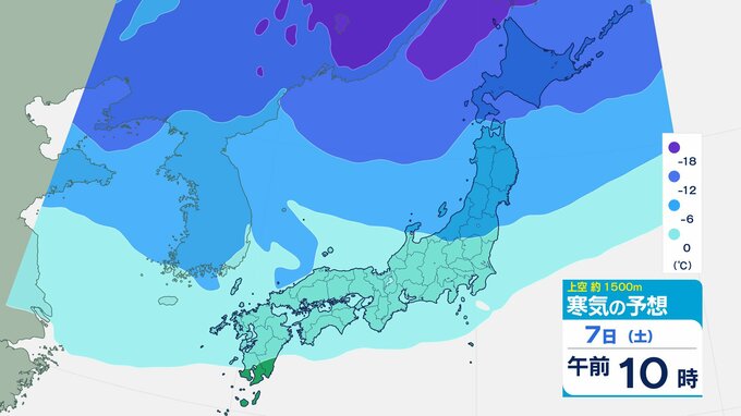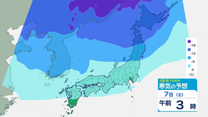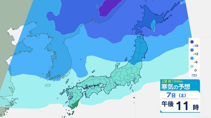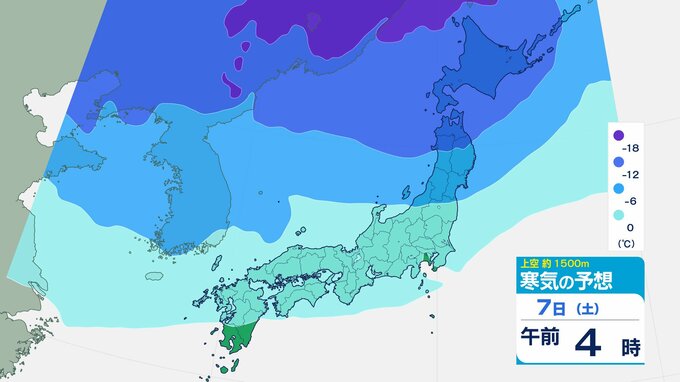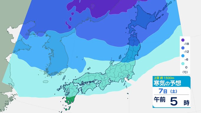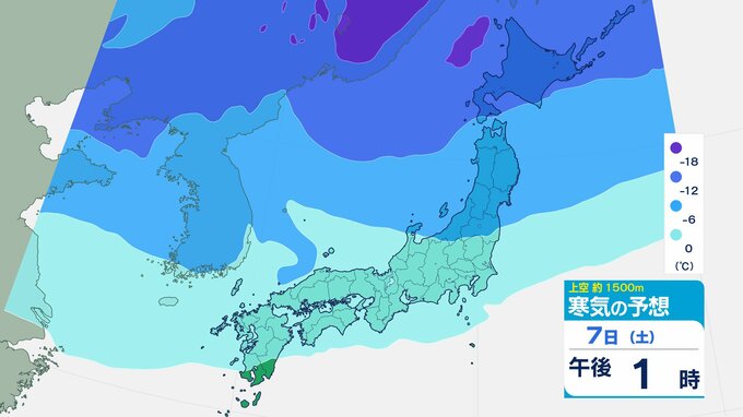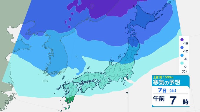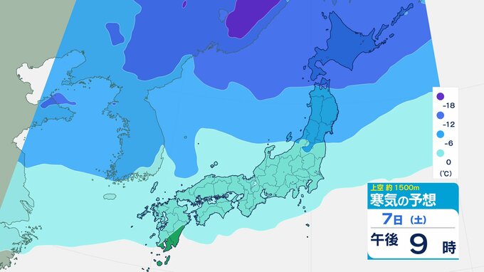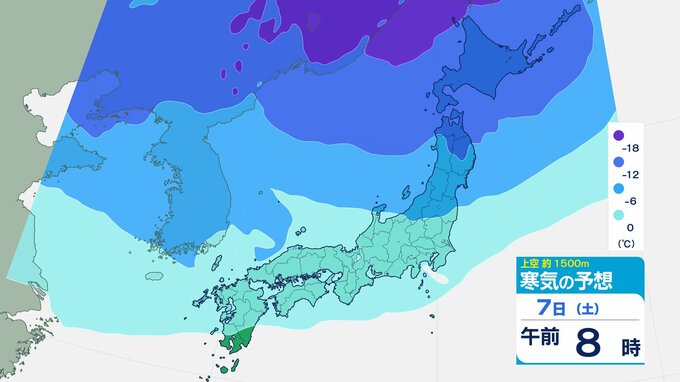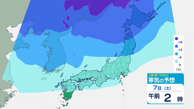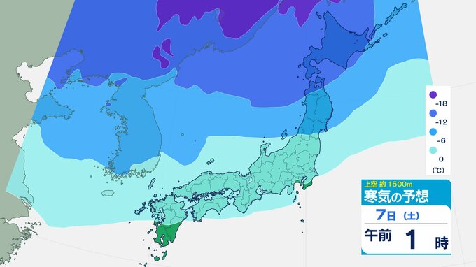 今週末は北海道~北陸で強い降雪…通行止めなど交通への影響のおそれ【上空の寒気シミュレーション】最新情報に注意を【2週間天気】 チューリップテレビ 2024年12月6日(金) 07:00 国内 天気 寒気の流入シミュレーション 7日(土)