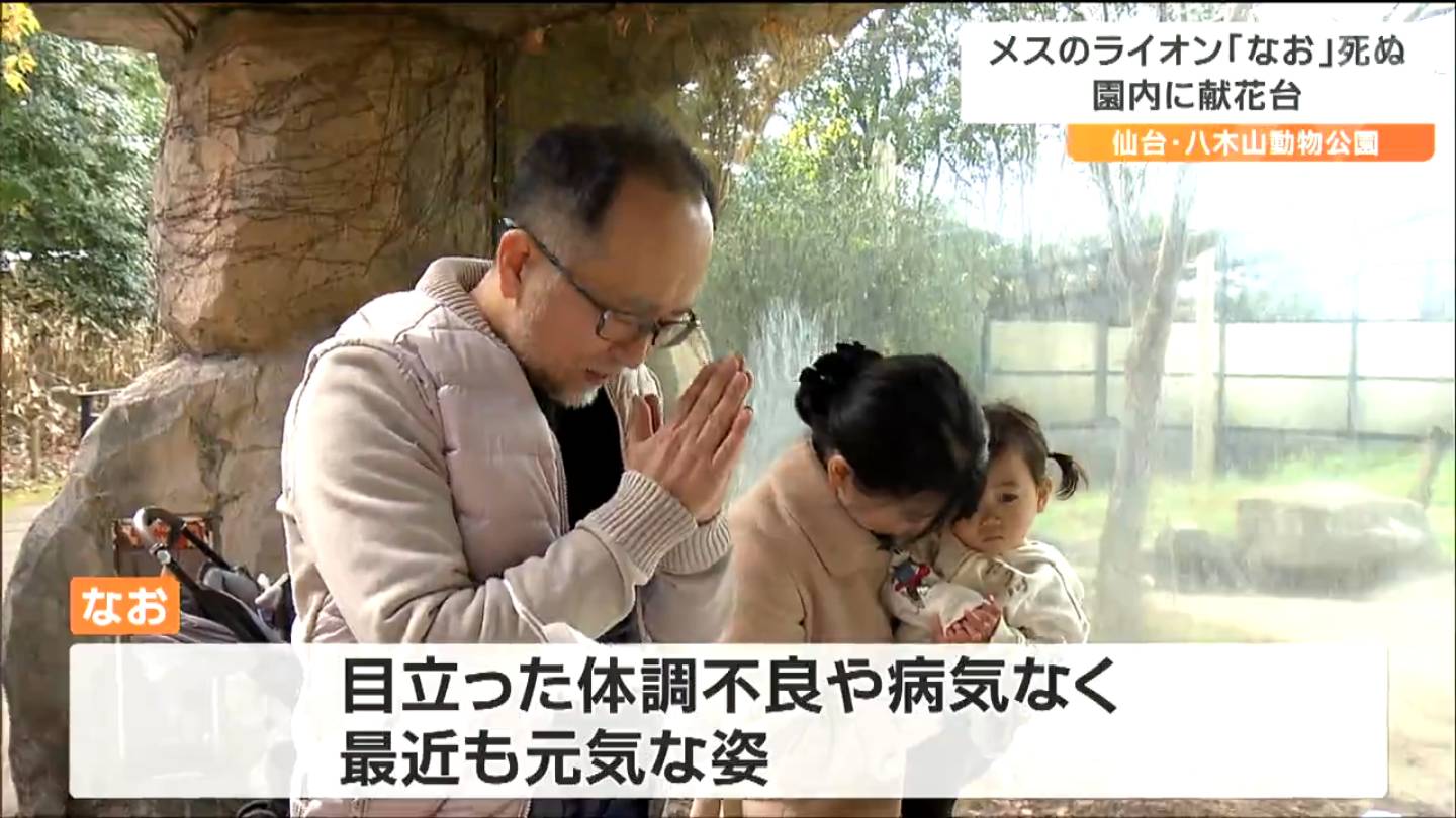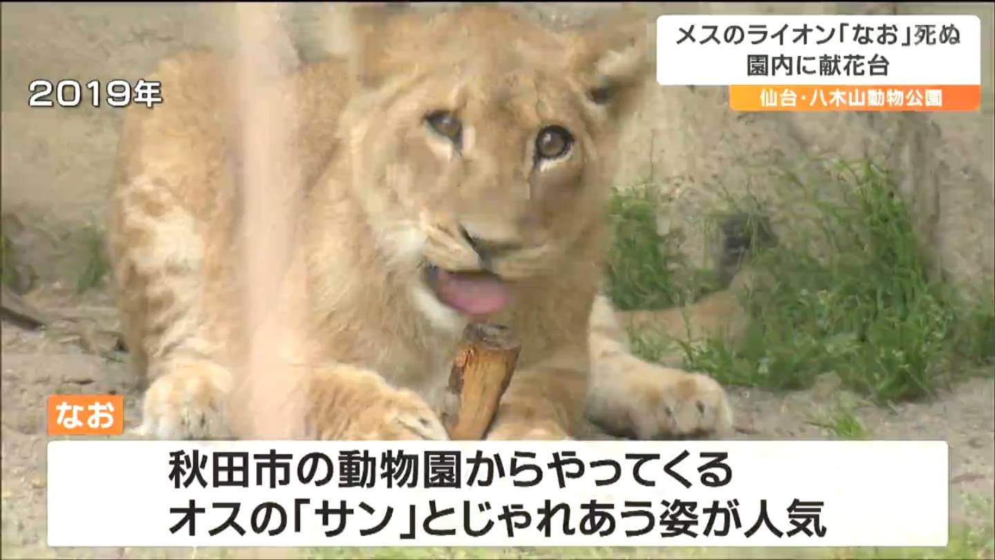 仙台市の八木山動物公園で飼育されていたメスのライオン「なお」が4日、死にました。最近まで元気な様子だったという「なお」。園内には献花台が設置され訪れた人たちが突然の死を悲しみました。