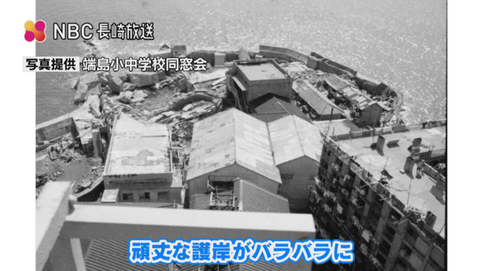 端島で暮らすうえで避けて通れない台風被害。当時の島民の記憶にも深く刻まれています。