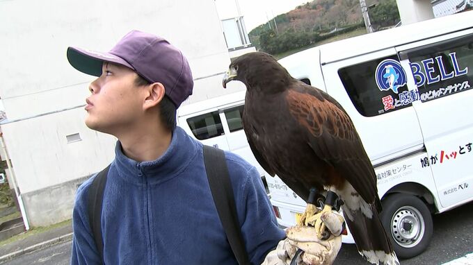 岡山県美作市の団地にきょう(5日)、タカを操る鷹匠がやってきました。目的は団地に住み着いた30羽以上のハトを追い払うこと。ベランダなど至るところにフンをするため住民が悩まされてきました。