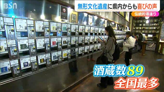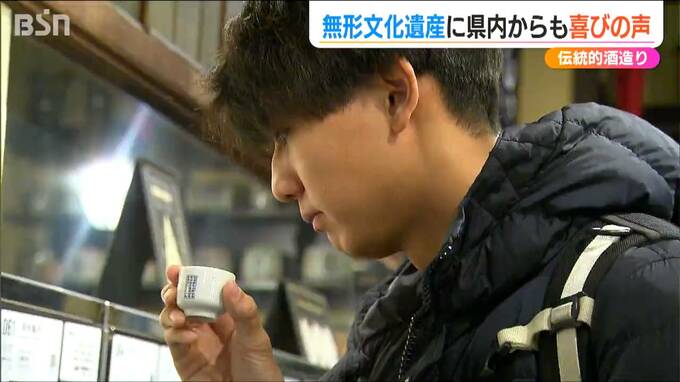 「伝統的な酒造り」とは杜氏や蔵人が米などを原料にしたこうじを使って手作業で酒を作る方法です。全国で最も多い89の酒蔵がある県内。その県内の日本酒を試飲できる施設でも喜びの声が聞かれました。