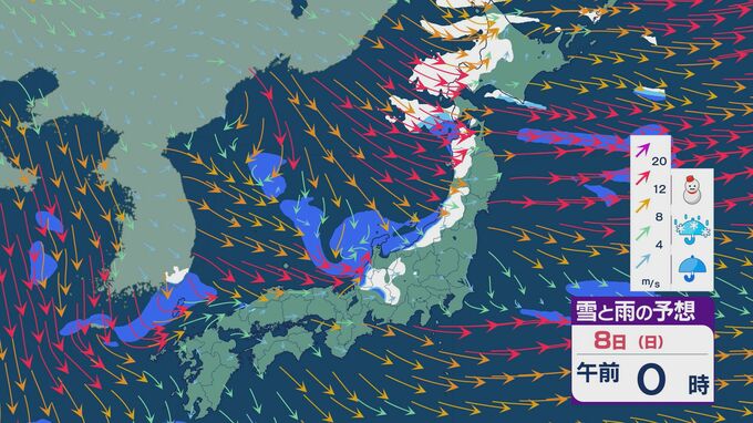 週末は“冬型”で北陸は雷雨の強まりに注意を 金沢の初雪は8日が「候補日」か 雨・雪と風シミュレーション 北陸放送 2024年12月6日(金) 12:36 国内 6日以降の雨や雪、風の予想です。7日(土)は朝鮮半島沿岸から雨雲が発達し北陸などに達する見込みです。 日本海から風が流れ込み、湿った空気がもたらされる状態は8日(日)も続きそうです。 日本海側では雨や雪が降りやすく、山地では雪が降る見込みです。