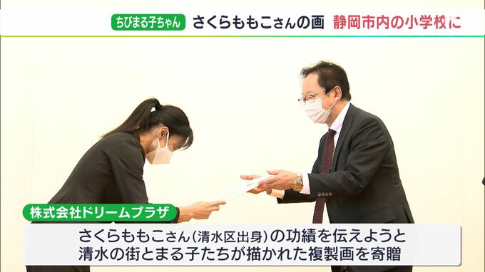 静岡市清水区出身の漫画家・さくらももこさんの功績を伝えていくため、市内の企業がちびまる子ちゃんの画を小学校に寄贈しました。
