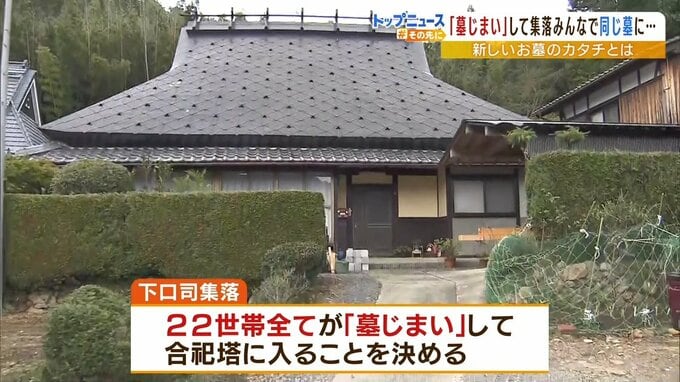 地区にある集落の一つである下口司集落の住民は22世帯全てが墓じまいして合祀塔に入ることを決めました。