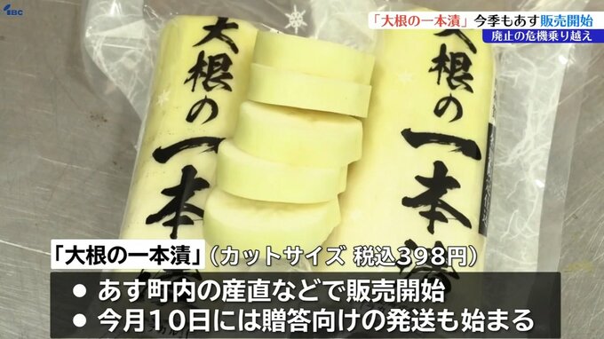 西和賀町の「大根の一本漬」は7日、町内の産直などで販売が始まり、10日には贈答向けの発送も始まる予定です。