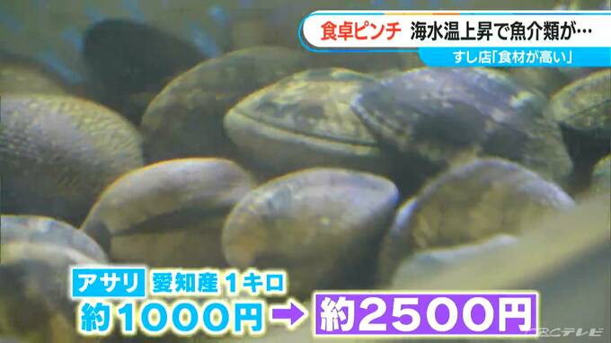 また、味噌汁に欠かせないアサリは、愛知産が1キロ約1000円だったのが今は約2500円だといいます。