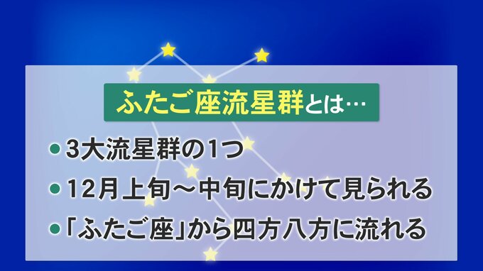 ふたご座流星群とは、3大流星群のひとつで12月上旬から中旬にかけて「ふたご座」から四方八方に流れ星が見られます。こうしたことからインターネット上ではいま「ふたご座流星群」を検索する人が増えているんですね。