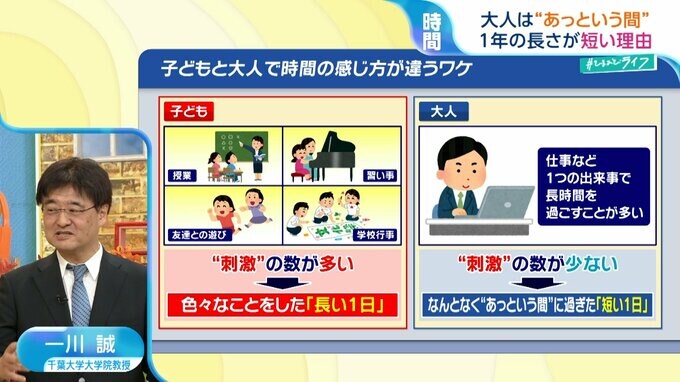 子どもは、授業や習い事、友達との遊び、学校行事など、「刺激」の数が多く、いろいろなことをした「長い1日」だと感じやすくなっています。